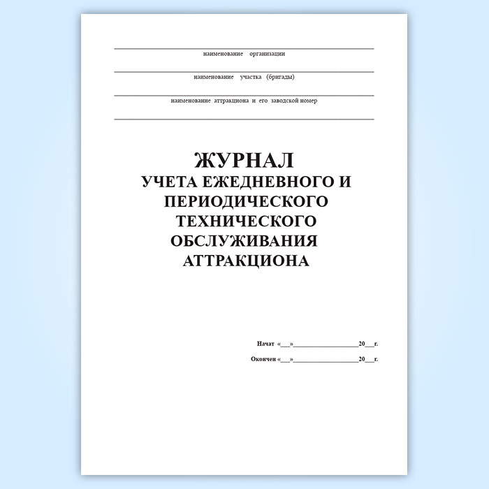 Журнал учета ежедневного и периодического технического обслуживания аттракциона в Черкесске купить