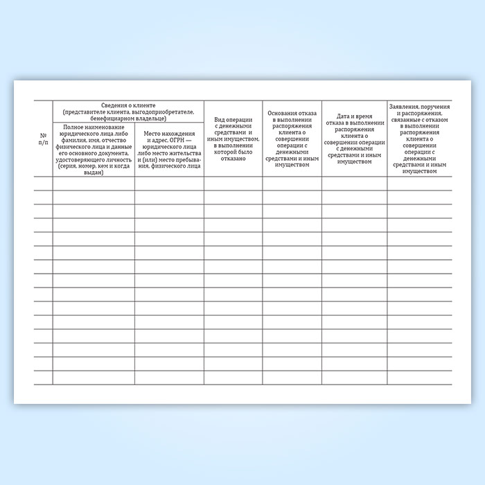 Журнал учета отказов в выполнении распоряжения клиентов о совершении операции с денежными средствами и иным имуществом в Черкесске купить