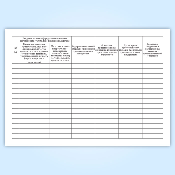 Журнал учета приостановленных операций с денежными средствами и иным имуществом клиента в Черкесске купить