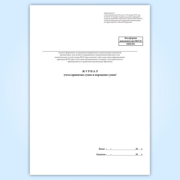 Журнал учета принятых сумок и порожних сумок (форма по ОКУД 0402301) в Черкесске купить