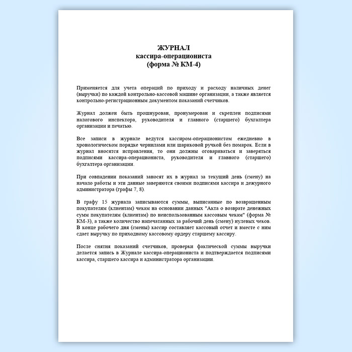 Журнал кассира-операциониста, вертикальный (форма № КМ-4) в Черкесске купить