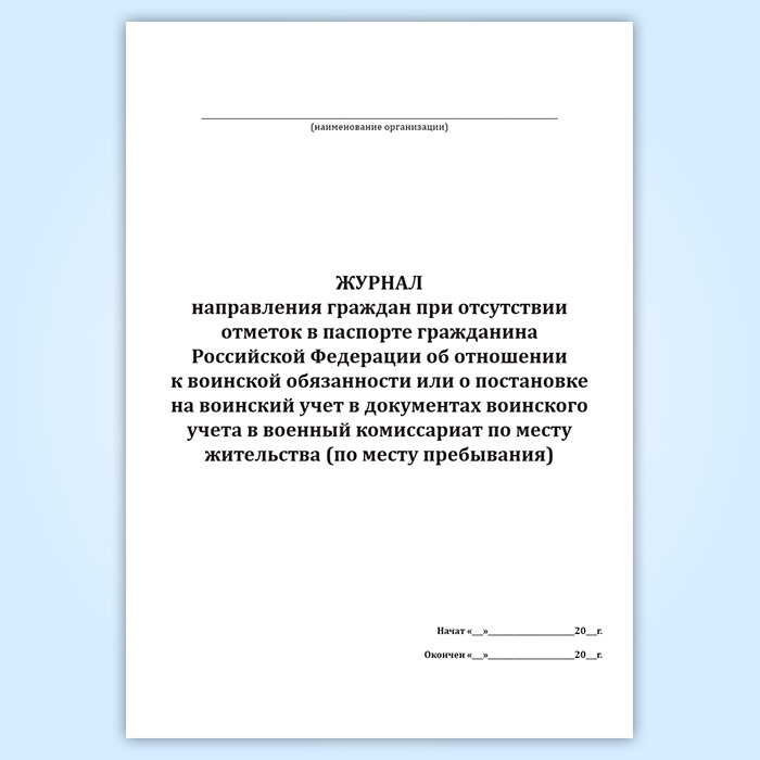 Журнал направления граждан при отсутствии отметок в паспорте гражданина Российской Федерации об отношении к воинской обязанности или о постановке на воинский учет в документах воинского учета в военный комиссариат по месту жительства (по месту пребывания) в Черкесске купить