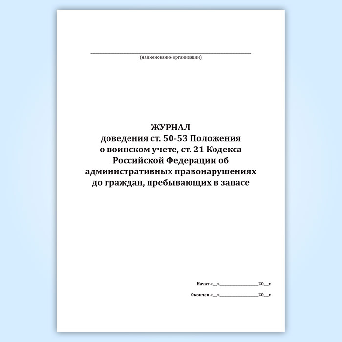 Журнал доведения ст. 50-53 Положения о воинском учете, ст. 21 Кодекса Российской Федерации об административных правонарушениях до граждан, пребывающих в запасе в Черкесске купить