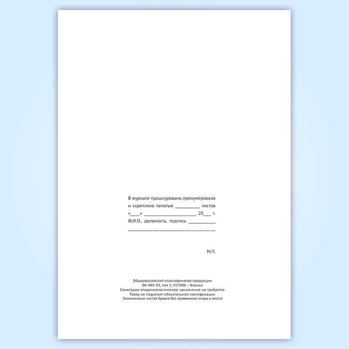 Вы получаете печатную продукцию прошнурованной и c местом для вашей печати в соответствии с действующими нормативными документами: