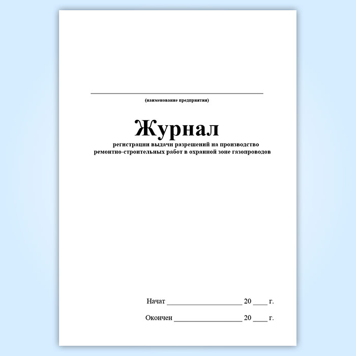 Журнал регистрации выдачи разрешений на производство ремонтно-строительных работ в охранной зоне газопроводов (ГЭГ-14) в Черкесске купить