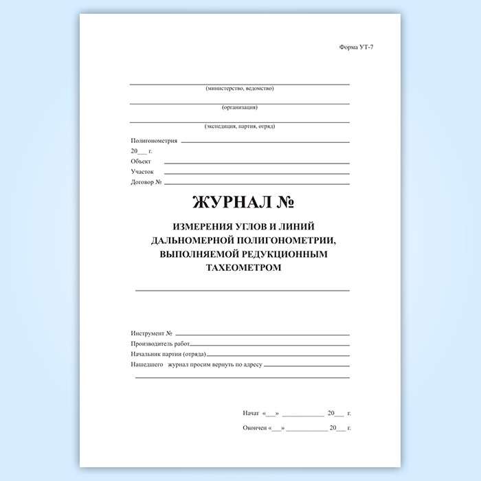 Журнал измерения углов и дальномерной полигонометрии, выполняемой редукционным тахеометром (форма УТ-7) в Черкесске купить