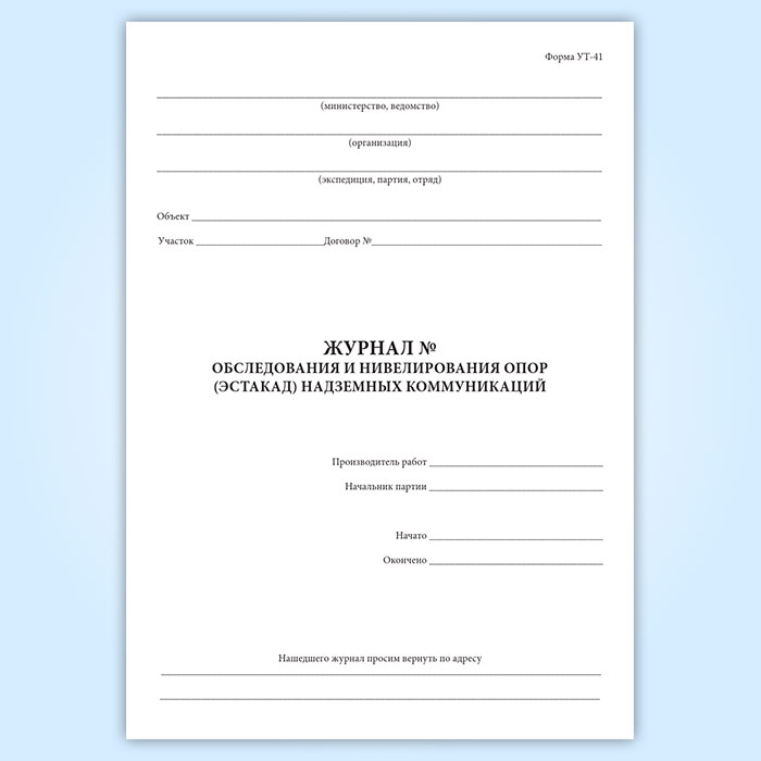 Журнал обследования и нивелирования опор (эстакад) надземных коммуникаций (форма УТ-41) в Черкесске купить