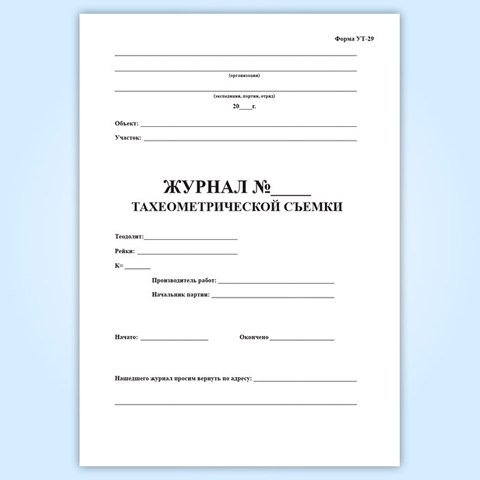 Журнал тахеометрической съемки (форма УТ-29) в Черкесске купить