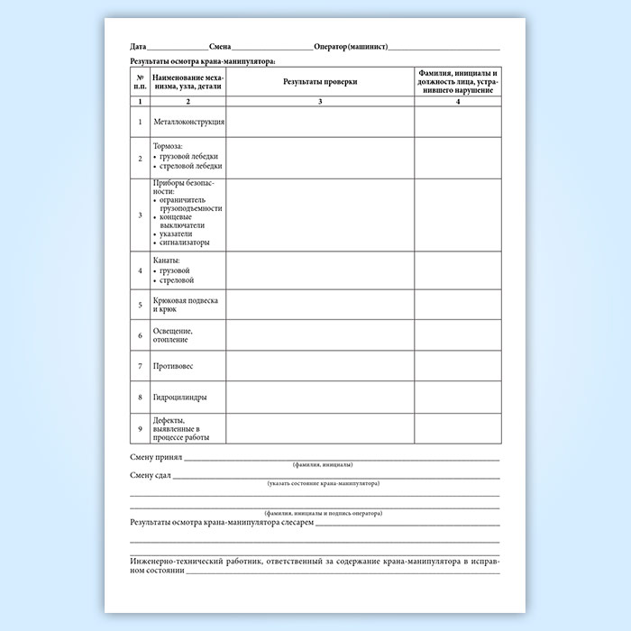 Вахтенный журнал приема-сдачи смен машинистами крана-манипулятора в Черкесске купить