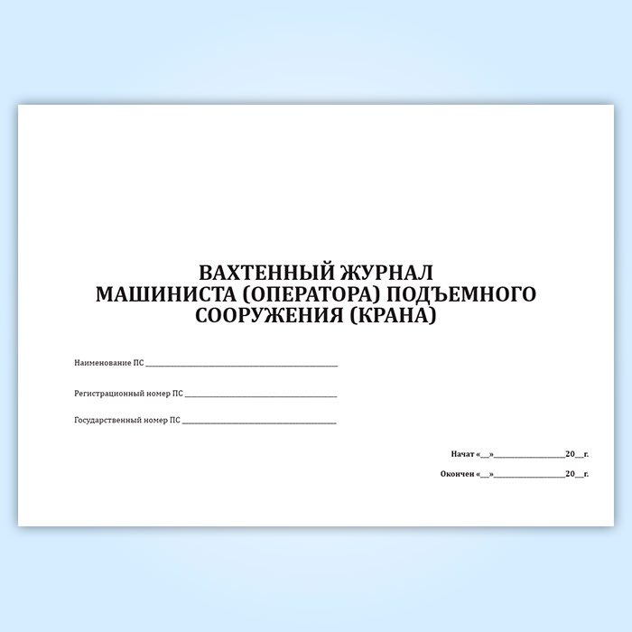 Вахтенный журнал машиниста (оператора) подъемного сооружения (крана) в Черкесске купить