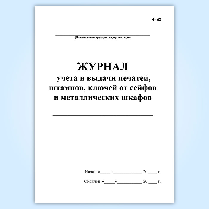 Журнал учета и выдачи печатей, штампов, ключей от сейфов и металлических шкафов (Ф-62) в Черкесске купить
