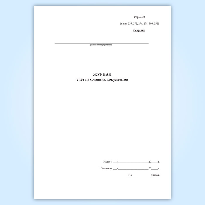 Журнал учета входящих документов (форма № 30) в Черкесске купить