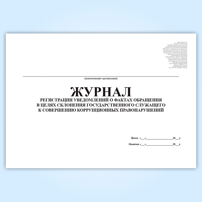Журнал регистрации уведомлений о фактах обращения в целях склонения государственного служащего к совершению коррупционных правонарушений в Черкесске купить