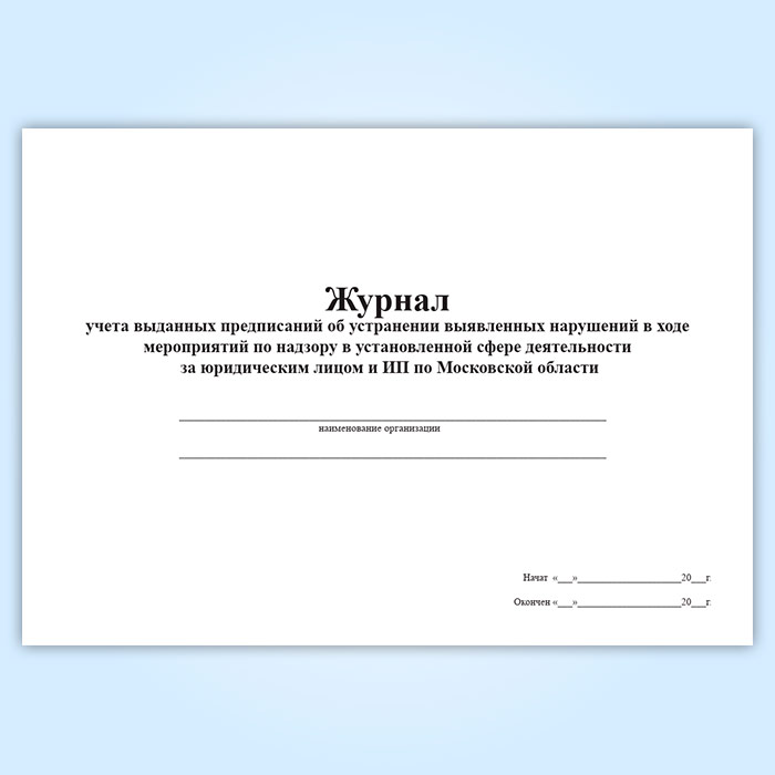 Журнал учета выданных предписаний об устранении выявленных нарушений в ходе мероприятий по надзору в установленной сфере деятельности за юридическим лицом и ИП по Московской области в Черкесске купить