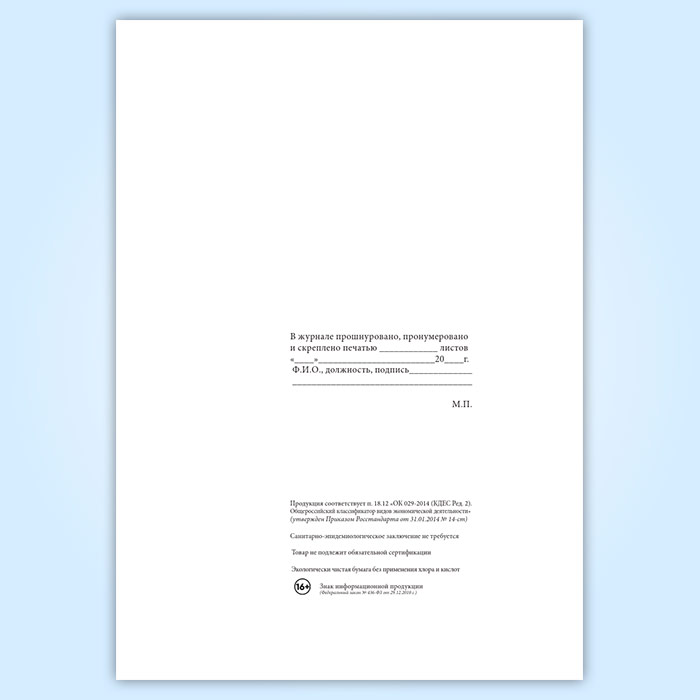 Вы получаете печатную продукцию прошнурованной и c местом для вашей печати в соответствии с действующими нормативными документами: