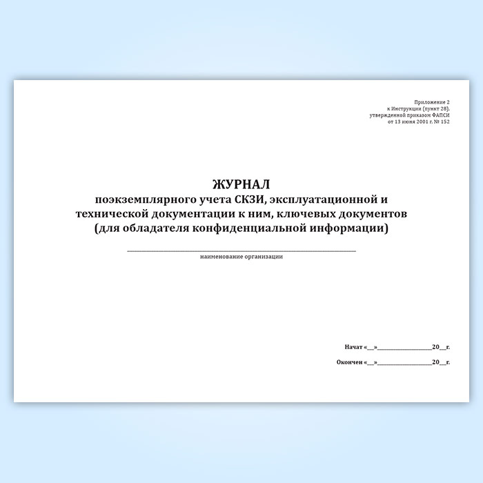 Журнал поэкземплярного учета СКЗИ, эксплуатационной и технической документации к ним, ключевых документов (для обладателя конфиденциальной информации) в Черкесске купить