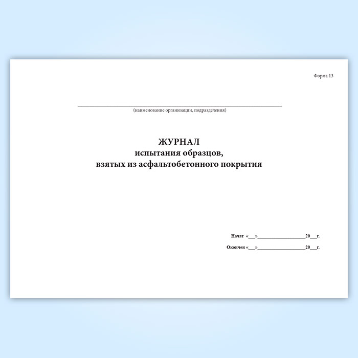 Журнал испытания образцов, взятых из асфальтобетонного покрытия (форма 13) в Черкесске купить