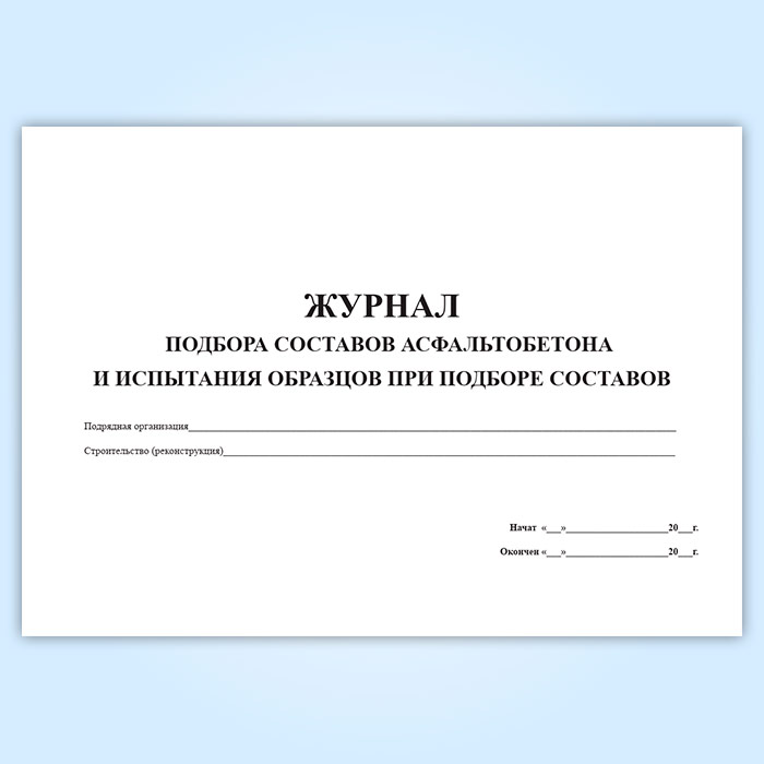 Журнал подбора составов асфальтобетона и испытания образцов при подборе составов в Черкесске купить