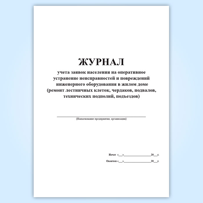 Журнал учета заявок населения на оперативное устранение неисправностей и повреждений инженерного оборудования в жилом доме ремонт лестничных клеток, чердаков, подвалов, технических подполий, подъездов в Черкесске купить