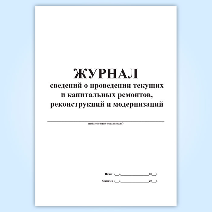 Журнал сведений о проведении текущих и капитальных ремонтов, реконструкций и модернизаций в Черкесске купить