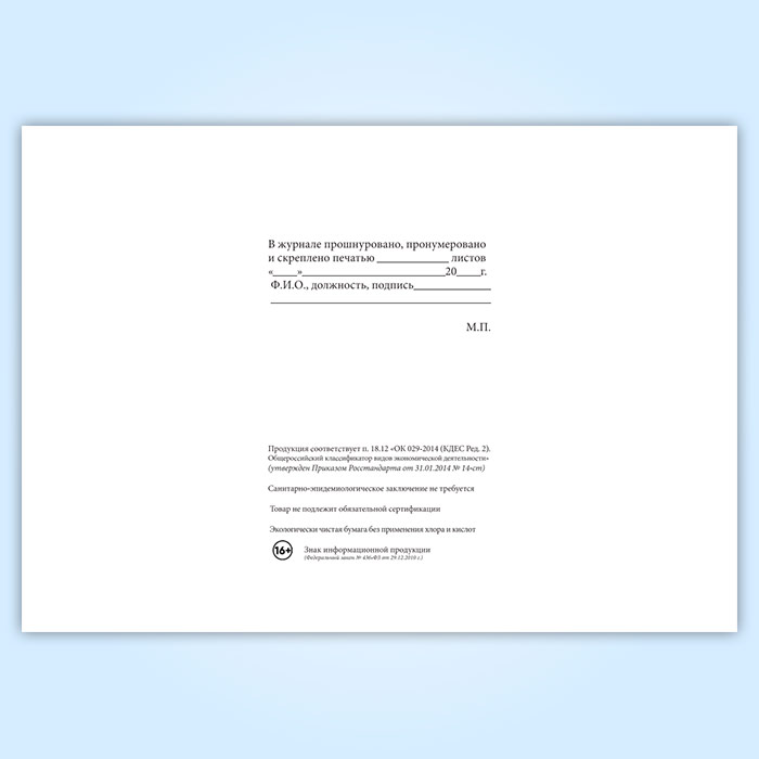 Вы получаете печатную продукцию прошнурованной и c местом для вашей печати в соответствии с действующими нормативными документами: