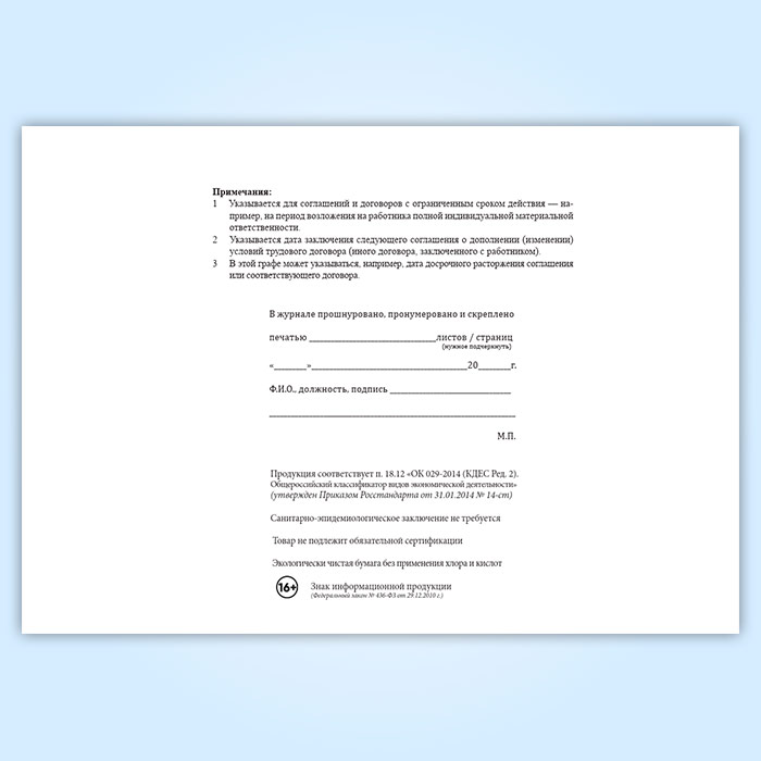 Журнал учета соглашений о дополнении (изменении) условий трудовых договоров и иных видов договоров, заключаемых с работниками предприятия в Черкесске купить