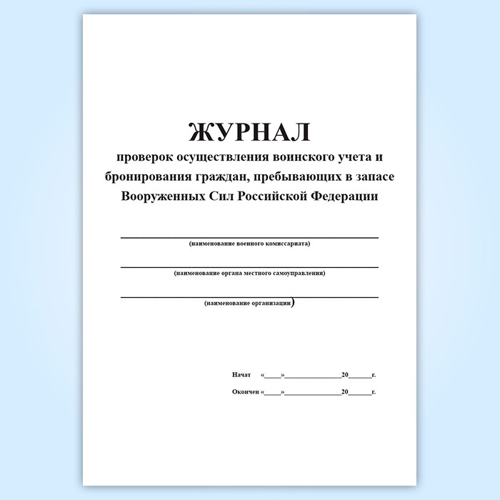 Журнал проверок осуществления воинского учета и бронирования граждан, пребывающих в запасе Вооруженных Сил Российской Федерации в Черкесске купить