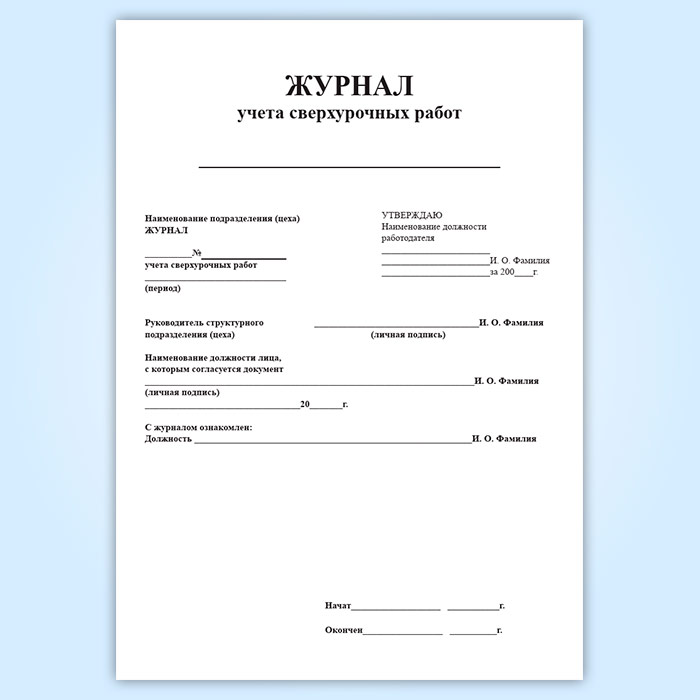 Журнал учета сверхурочных работ в Черкесске купить