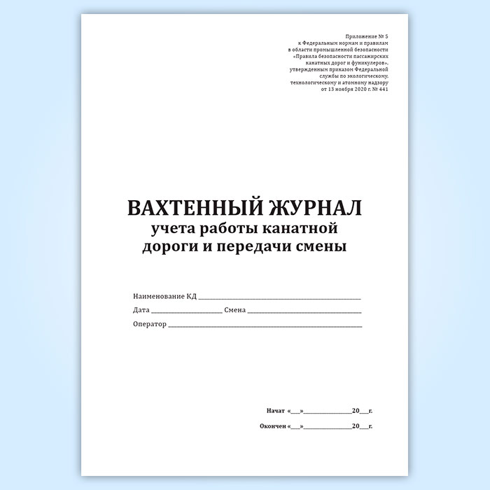 Вахтенный журнал учета работы канатной дороги и передачи смены в Черкесске купить