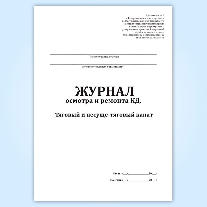 Журнал осмотра и ремонта канатной дороги. Тяговый и несуще-тяговый канат (форма № 2) в Черкесске купить