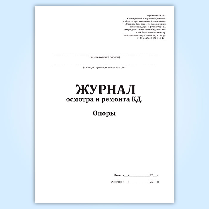Журнал осмотра и ремонта канатной дороги. Опоры (форма № 6) в Черкесске купить