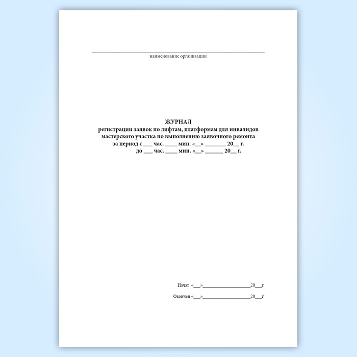 Журнал регистрации заявок по лифтам, платформам для инвалидов мастерского участка по выполнению заявочного ремонта в Черкесске купить