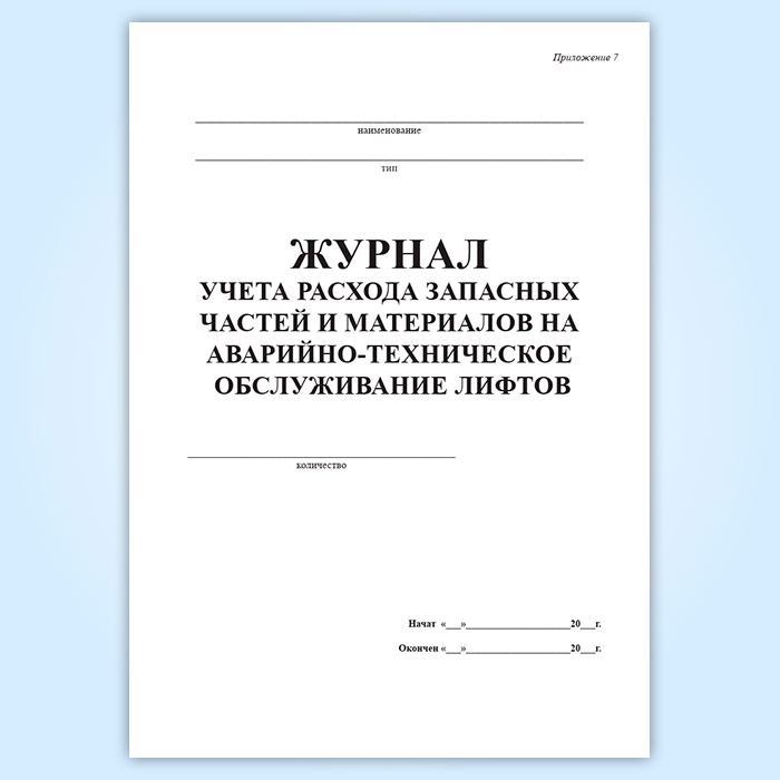 Журнал учета расхода запасных частей и материалов на аварийно-техническое обслуживание лифтов в Черкесске купить