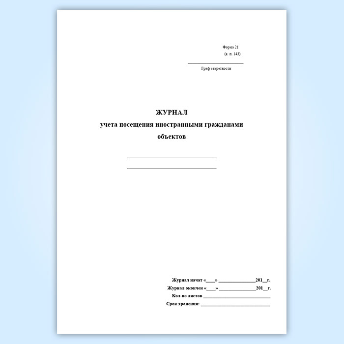 Журнал учета посещения иностранными гражданами объектов (форма 21) в Черкесске купить