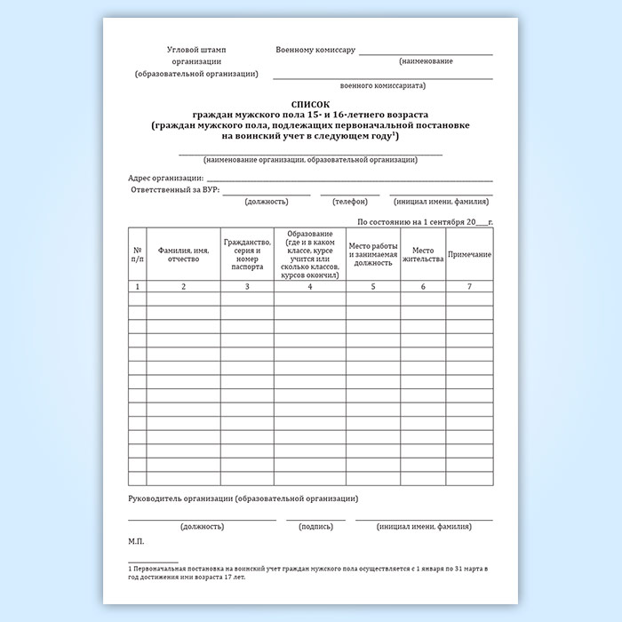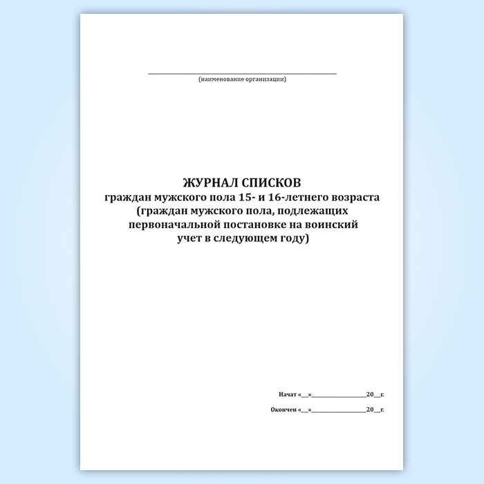 Журнал списков граждан мужского пола 15- и 16-летнего возраста (граждан мужского пола, подлежащих первоначальной постановке на воинский учет в следующем году) в Черкесске купить