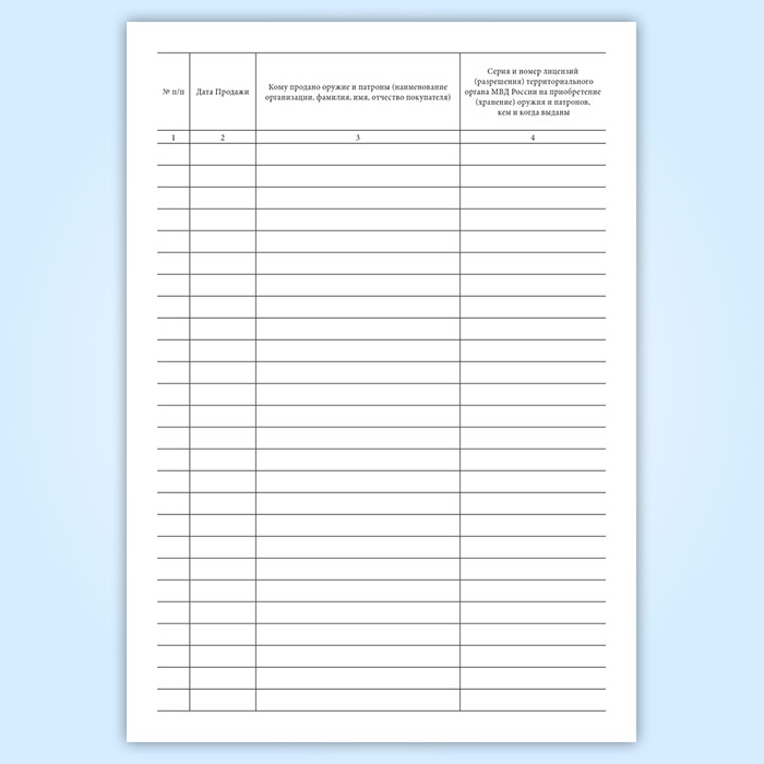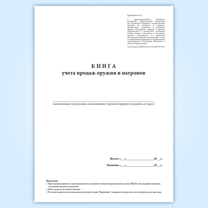Книга учета продаж оружия и патронов (Приказ МВД России от 29.06.2012 N 646) в Черкесске купить