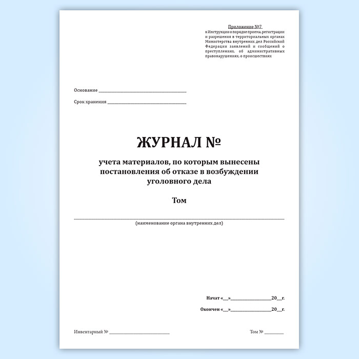 Журнал учета материалов, по которым вынесены постановления об отказе в возбуждении уголовного дела в Черкесске купить