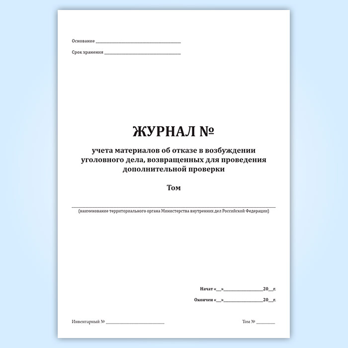 Журнал учета материалов об отказе в возбуждении уголовного дела, возвращенных для проведения дополнительной проверки в Черкесске купить