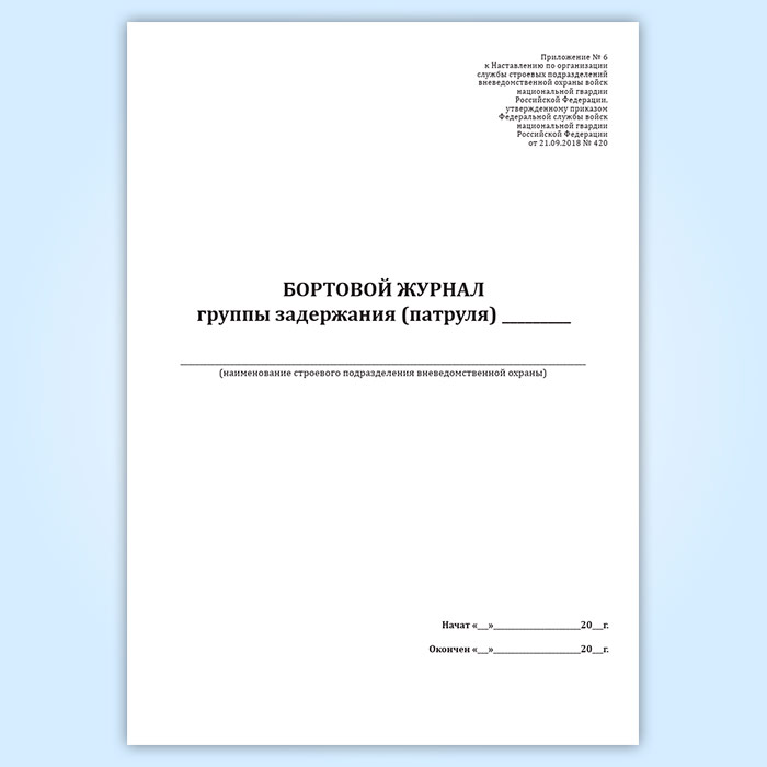 Бортовой журнал группы задержания (патруля) в Черкесске купить