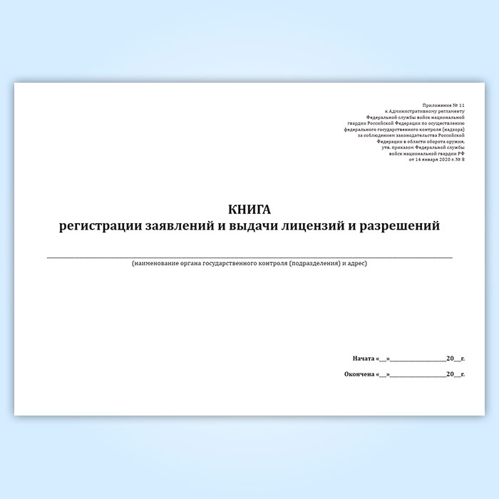 Книга регистрации заявлений и выдачи лицензий и разрешений (Приказ Росгвардии от 14.01.2020 N 8) в Черкесске купить