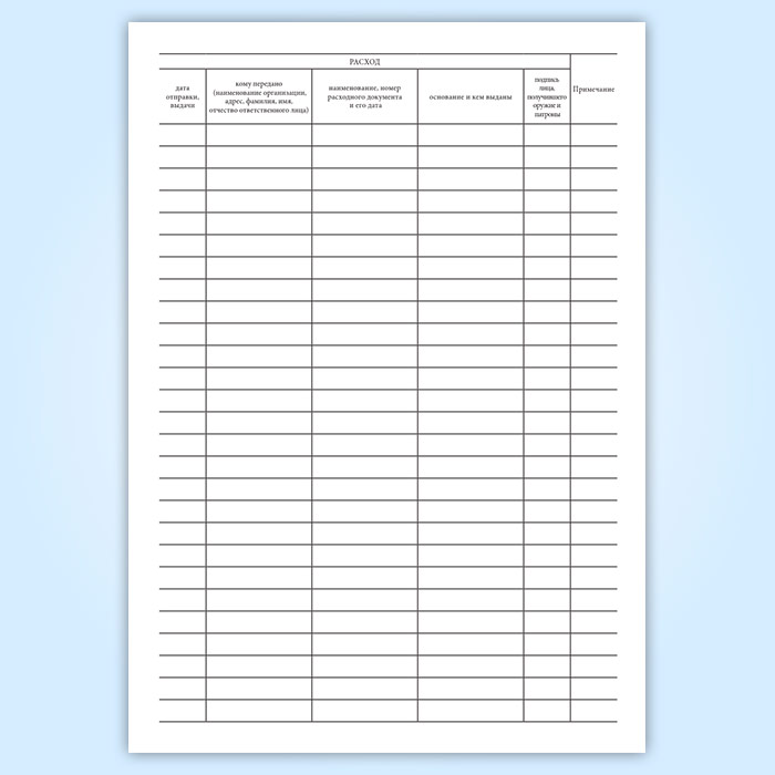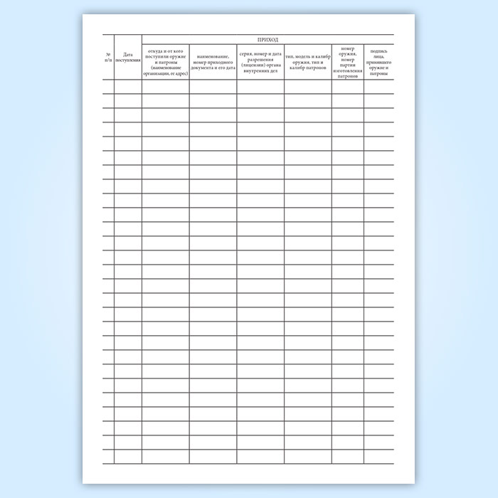 Книга учета наличия и движения поступающего, хранящегося и выдаваемого (проданного) оружия и патронов в Черкесске купить