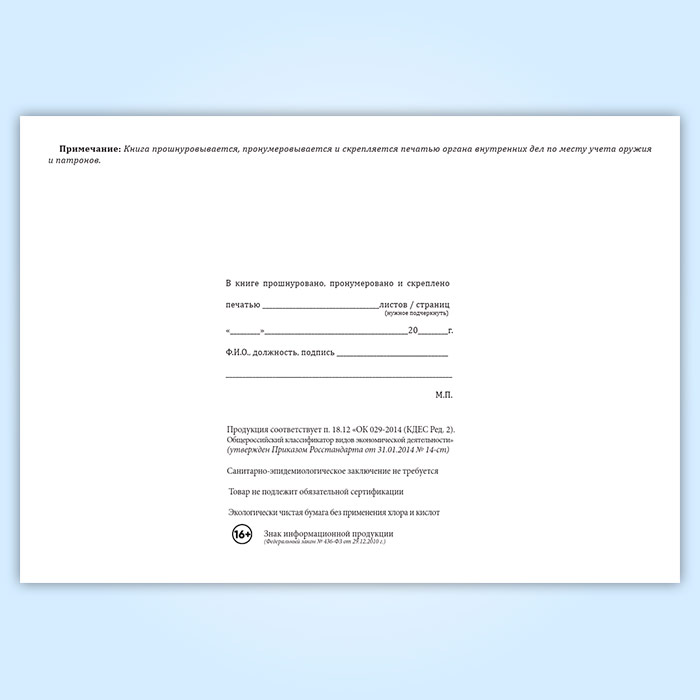 Книга номерного учета и персонального закрепления оружия и патронов в Черкесске купить