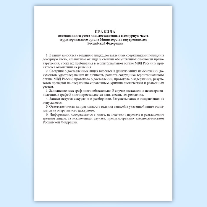 Книга учета лиц, доставленных в дежурную часть территориального органа МВД РФ в Черкесске купить