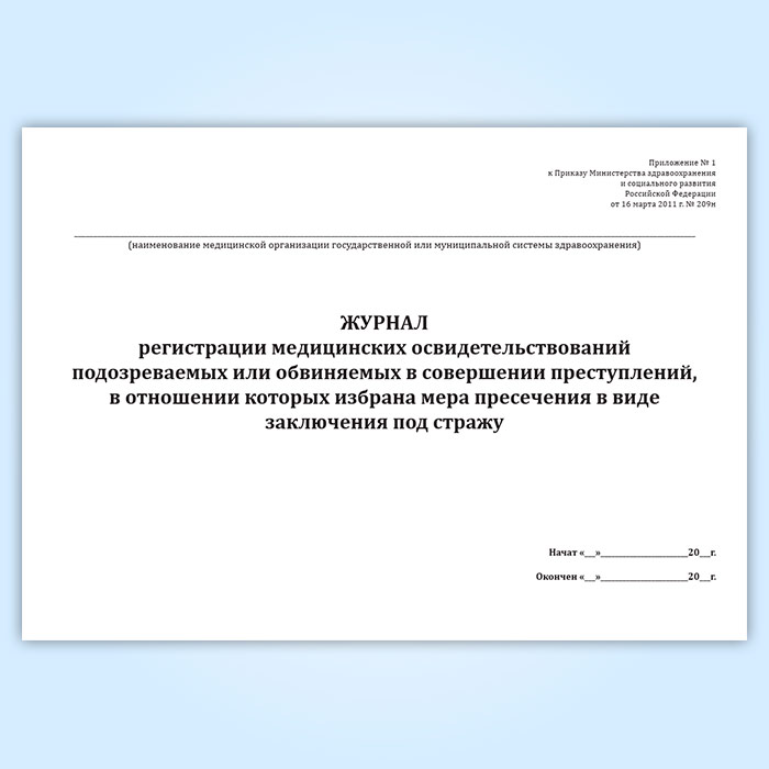 Журнал регистрации медицинских освидетельствований подозреваемых или обвиняемых в совершении преступлений, в отношении которых избрана мера пресечения в виде заключения под стражу в Черкесске купить