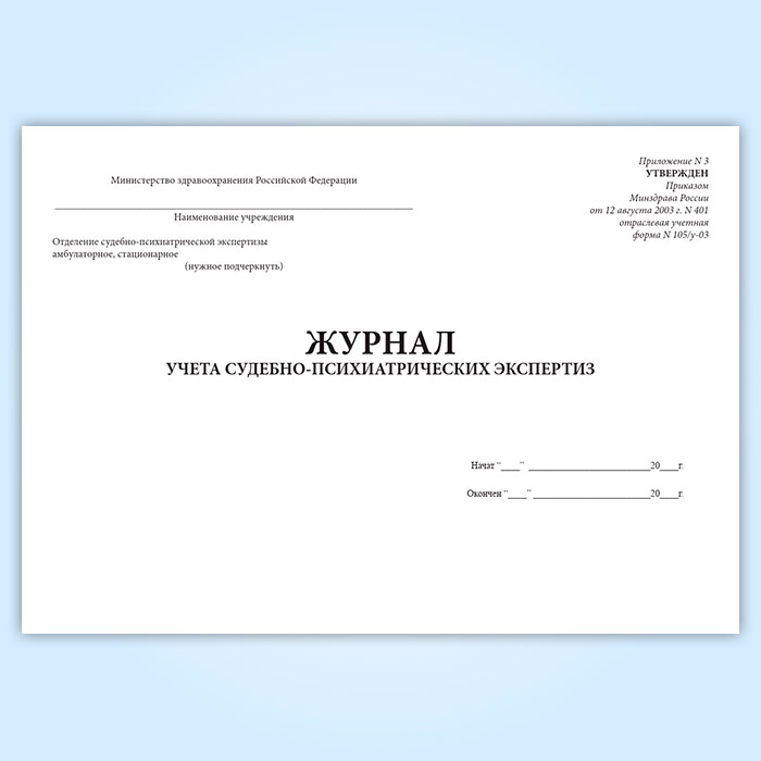 Журнал учета судебно-психиатрических экспертиз (форма 105/у-03) в Черкесске купить