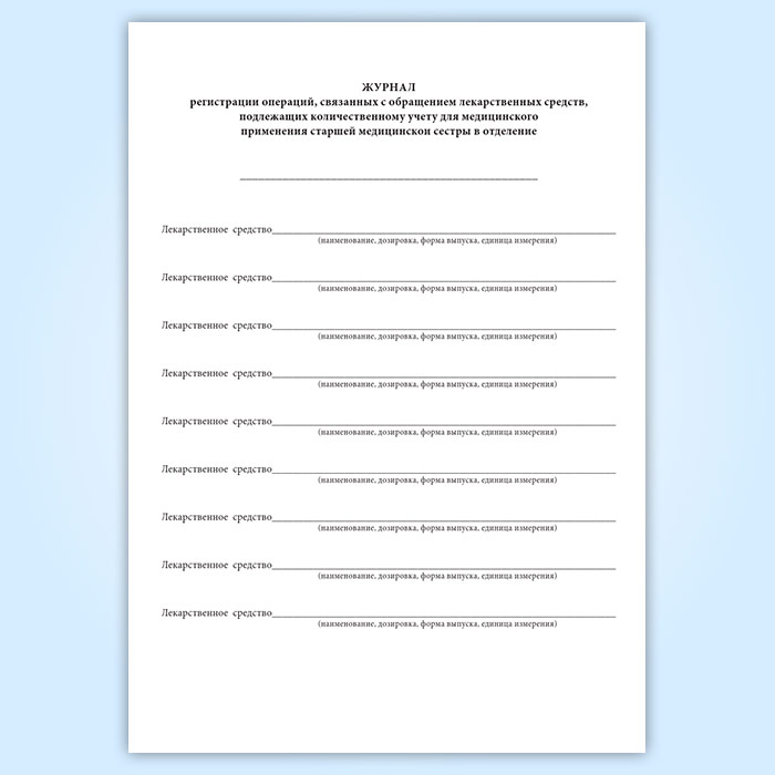 Журнал регистрации операций, связанных с обращением лекарственных средств, подлежащих количественному учету для медицинского применения старшей медицинской сестры в отделение в Черкесске купить