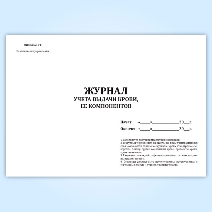 Журнал учета выдачи крови, ее компонентов в Черкесске купить
