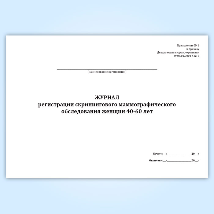 Журнал регистрации скринингового маммографического обследования женщин 40-60 лет в Черкесске купить