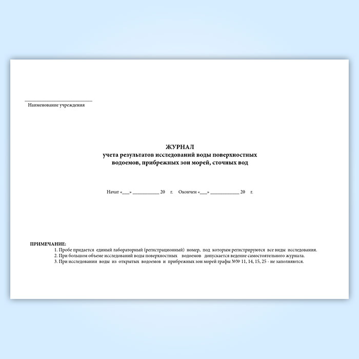 Журнал учета результатов исследований воды поверхностных водоемов, прибрежных зон морей, сточных вод (форма № 324-у) в Черкесске купить