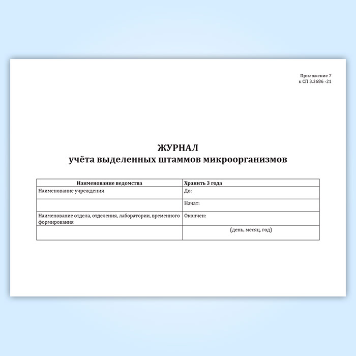 Журнал учета выделенных штаммов микроорганизмов (СанПиН 3.3686-21) в Черкесске купить